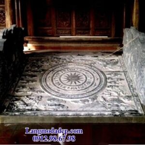 Trả lời: Chiếu đá nên được đặt ở vị trí chính diện đối diện cổng ra vào của khu lăng mộ, giữa bậc thềm hai lối đi lên. Lưu ý đầu rồng phải đặt chếch lên trên để mang đến những điều tốt lành cho khu lăng mộ.
