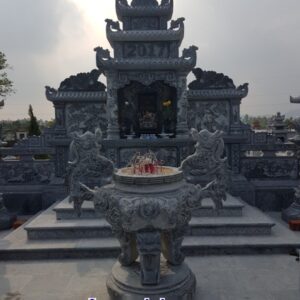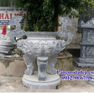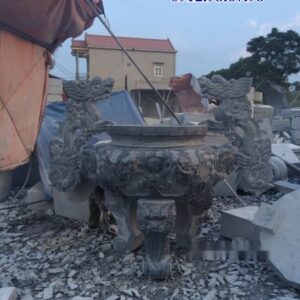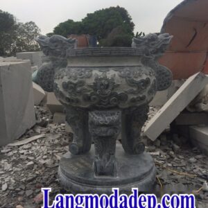 Mẫu đỉnh hương được làm từ chất liệu đá xanh đen có nguồn gốc Thanh Hóa tạo nên vẻ cổ kính rất phù hợp với không khi tâm linh nơi đây, miệng lư có chiều rộng đường kính 76cm, chiều cao từ đất tới miệng lư là 89cm rất vừa tay với để phật tử cắm hương làm lễ. Lư hương có phần hai mái tròn để che mưa rất hài hòa mang tính thẩm mỹ cũng như mục đích sử dụng được đề cao trong thiết kế, đây là một thiết kế riêng biệt của cơ sở Đá Mỹ Nghệ Thiên Trường Ninh Bình chúng tôi.