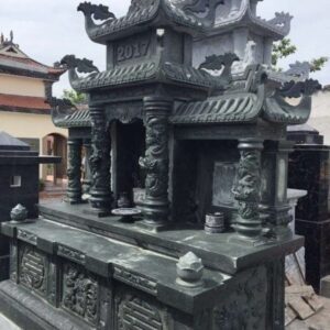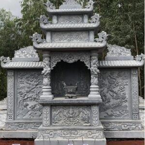 - Lăng thờ ba mái đá: Là loại lăng có thiết kế nổi bật với 3 mái cao cong chạm khắc họa tiết tinh xảo, kích thước lớn.