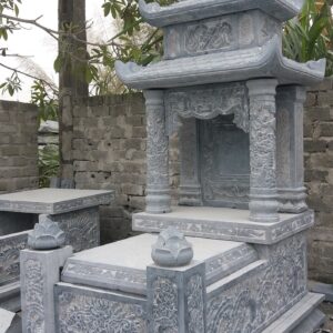 Mộ đá ba mái nổi bật với chiều cao vượt trội và vẻ đẹp uy nghi, tráng lệ. Từng khối đá được các nghệ nhân đục đẽo tỉ mỉ, chạm trổ hoa văn tinh xảo, tạo nên một tác phẩm nghệ thuật độc đáo. Giá thành cao đi kèm với chất lượng đỉnh cao, xứng đáng là nơi an nghỉ cuối cùng cho người đã khuất.
