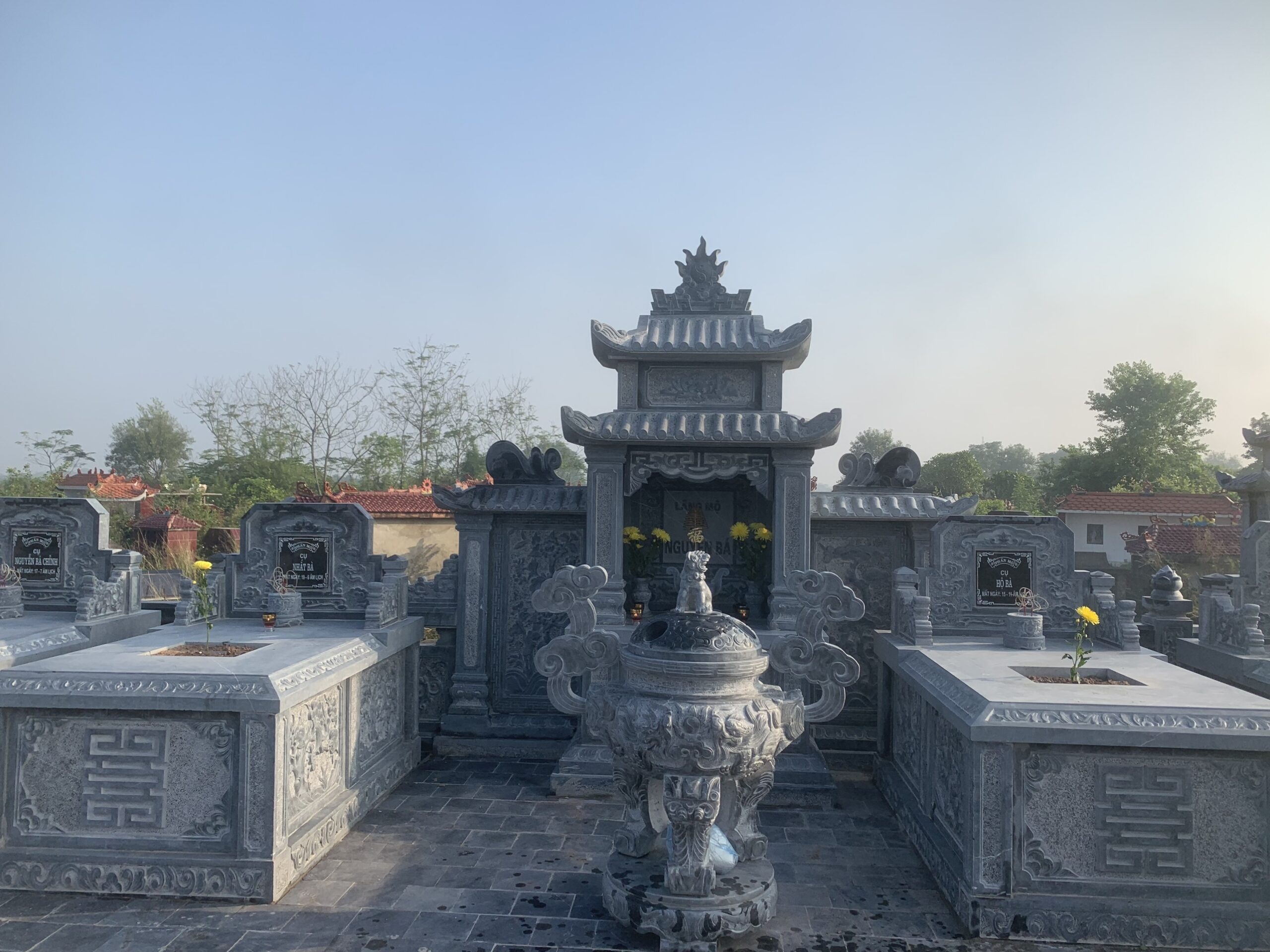 Đây là Lăng mộ đá xanh tại Phú Xuyên, Phú Thọ. Công trình nghệ thuật tâm linh này là của gia đình A Quyền với mong muốn tạo nên một không gian yên nghỉ thiêng liêng và trang trọng cho tổ tiên của dòng họ tại Phú Thọ. Công trình không chỉ thể hiện lòng biết ơn và tôn kính với những người đã khuất mà còn mang ý nghĩa sâu sắc trong việc duy trì truyền thống tôn sùng tổ tiên. Gia chủ tin tưởng rằng, việc lựa chọn chất liệu đá xanh cao cấp và chạm khắc các hoạ tiết truyền thống như tứ linh, hoa sen,… trên bề mặt lăng mộ theo phong thủy sẽ đem lại sự bình an, may mắn và thịnh vượng cho toàn bộ dòng họ.