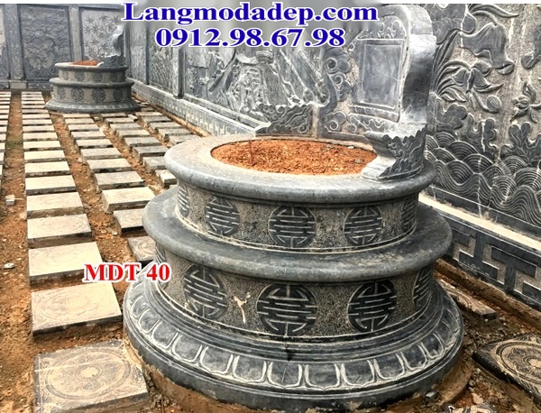Lăng mộ đá tròn NB 40 – Đá Mỹ Nghệ Ninh Bình được chế tác bằng cách ghép nhiều phiến đá cạnh nhau theo kết cấu tròn để lại nắp mộ đá ở trung tâm mang nhiều ý nghĩa tốt đẹp về phong thủy và tâm linh cho gia chủ. Đây là kiểu dáng mộ rất phổ biến của người Việt xưa.