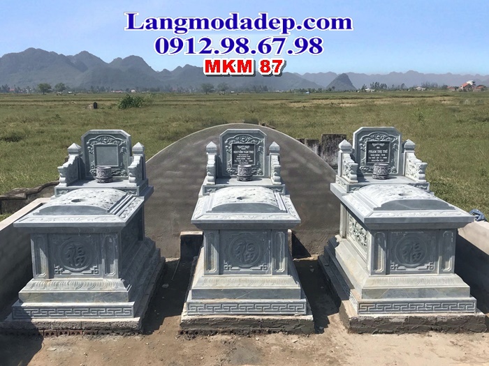 Mẫu lăng mộ đá hậu bành xanh rêu KMK 87 – Đá Mỹ Nghệ Ninh Bình là khu lăng mộ có thiết kế đơn giản phù hợp với nghĩa trang diện tích nhỏ. Trong thiết kế này không làm lăng thờ chung đồ sộ mà tập trung vào việc hoàn thiện các ngôi mộ phần đẹp và sang trọng nhất.