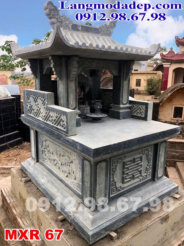 - Mẫu lăng mộ đá xanh rêu thiết kế đơn giản