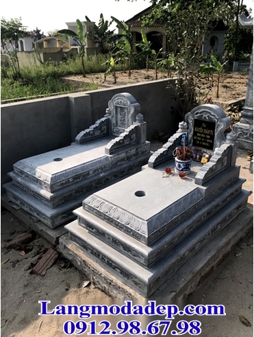Mộ có hình dáng chữ nhật truyền thống, phần mái được chạm khắc tinh xảo với những đường nét hoa văn uốn lượn mềm mại. Phần đế mộ được xây thành 3 tầng, mang lại cảm giác vững chãi cho ngôi mộ. Bề mặt đá nhẵn mịn, được đánh bóng sáng bóng, tôn lên vẻ đẹp tự nhiên của chất liệu đá.