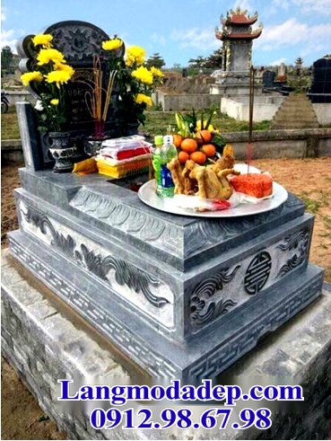 Ngôi mộ được làm từ chất liệu đá xanh đen, kết hợp cùng các đường cắt đá vuông vức, mang lại cảm giác uy nghi, mạnh mẽ. Bên cạnh đó, đá xanh đen còn nổi tiếng với độ cứng cao, chịu được mọi tác động của thời tiết như nắng mưa, sương gió mà không bị bào mòn hay phai màu. Điều này đảm bảo ngôi mộ luôn bền đẹp với thời gian.