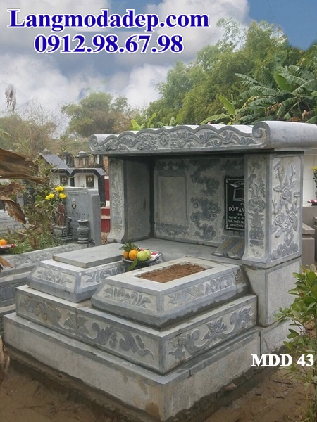 Mái che thường được thiết kế công phu với nhiều họa tiết và hoa văn mang đậm nét tâm linh của người Việt. Mẫu mộ đá 43 có giá thành rẻ hơn đối với các loại mộ có mái cầu kỳ khác. Được làm từ đá tự nhiên chính vì vậy có độ bền cao, ít bị mài mòn bởi thời tiết khắc nghiệt.