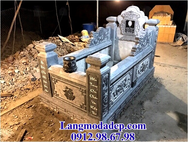 Mẫu mộ đá này không chỉ là nơi an nghỉ bình yên cho người đã khuất mà còn mang ý nghĩa tâm linh sâu sắc. Bia mộ cao tượng trưng cho sự trường tồn và tôn nghiêm, các hoa văn chạm khắc như rồng mang ý nghĩa quyền lực, bảo hộ, hoa sen biểu trưng cho sự thanh tịnh và thuần khiết. Chữ “Phúc” lớn ở mặt trước mộ thể hiện mong ước phúc đức, thịnh vượng cho con cháu.