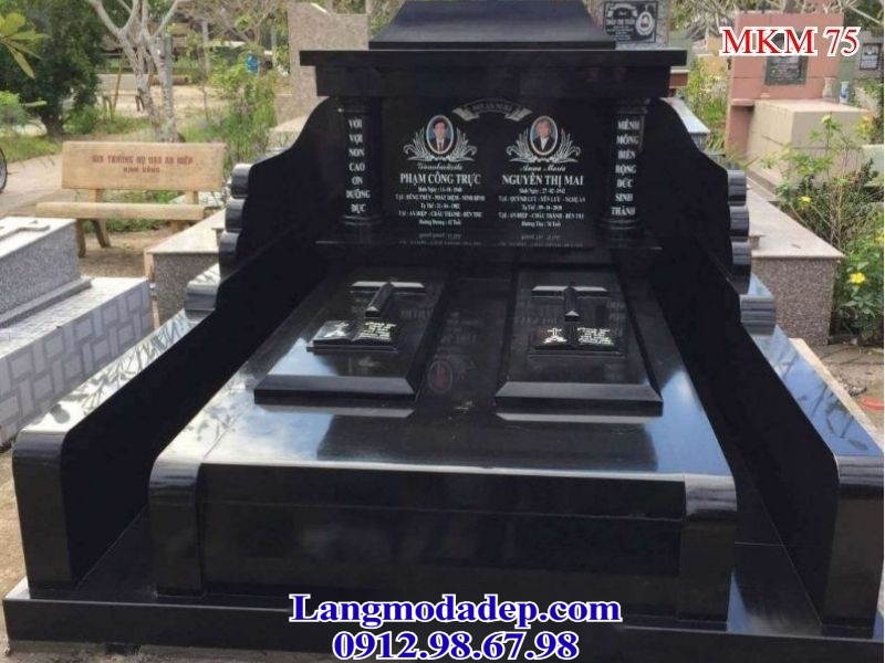 Mộ đá hoa cương không mái MKM 75 là mẫu mộ hiện đại với thiết kế tối giản, mang lại cảm giác trang nhã và tinh tế. Mộ có kích thước 81 cm x 127 cm, phần thân được làm liền khối, không chạm khắc hoa văn, giữ nguyên vẻ đẹp tự nhiên của đá hoa cương. Bề mặt mộ nhẵn bóng, được đánh bóng kỹ lưỡng, giúp tăng thêm độ sang trọng và tạo sự liền mạch cho toàn bộ thiết kế.
