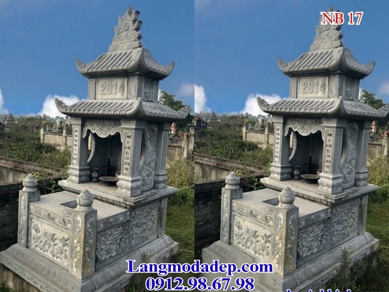 Mộ đá hai mái NB 17 sở hữu thiết kế hai tầng mái cong nhẹ, mang đậm nét truyền thống, không chỉ giúp bảo vệ phần mộ mà còn tạo nên một không gian thờ tự trang nghiêm, ấm áp, kết nối tâm linh giữa các thế hệ.