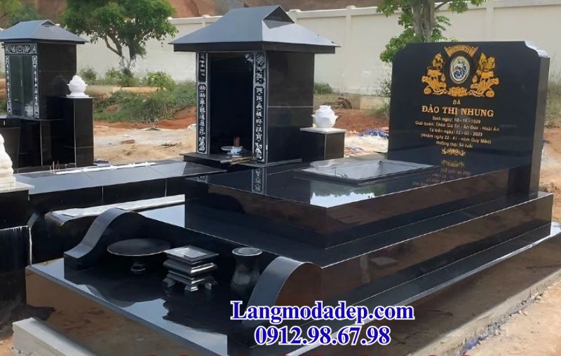 Mẫu mộ này phù hợp để xây dựng mộ đôi hoặc mộ gia đình, là nơi an nghỉ yên bình cho người đã khuất, đồng thời thể hiện lòng thành kính, biết ơn của con cháu. Để duy trì vẻ đẹp, cần vệ sinh thường xuyên bằng khăn mềm và nước sạch, tránh sử dụng hóa chất mạnh để bảo vệ bề mặt đá.