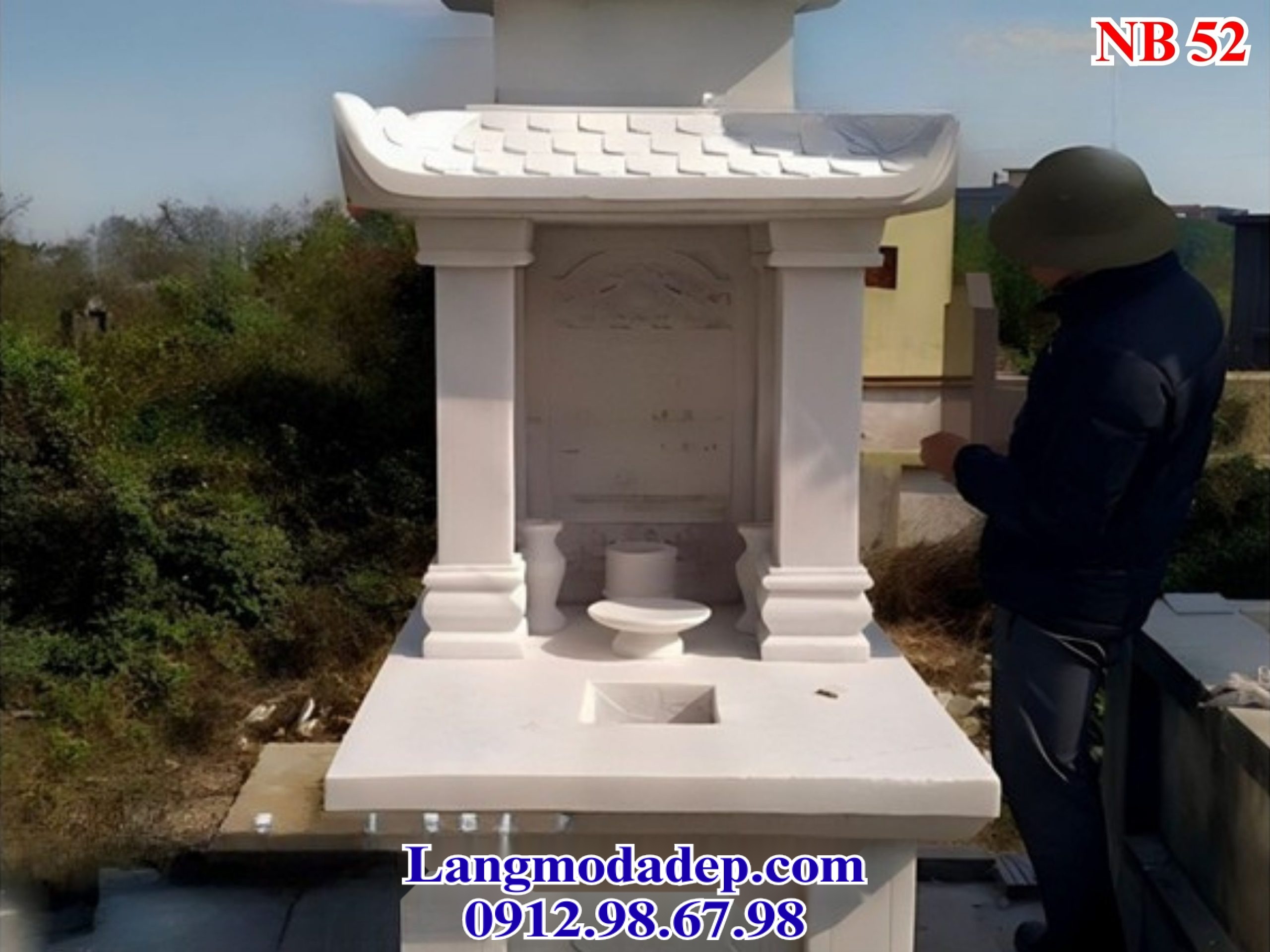 Liên hệ ngay với Đá Mỹ nghệ Ninh Bình qua Hotline 0912.98.67.98 để được tư vấn và báo giá mộ đá hai mái trắng Italy – NB52 một cách chi tiết và tận tình trong thời gian sớm nhất!