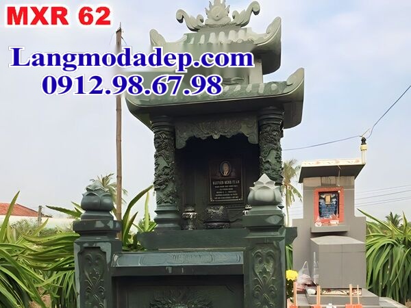 Đặt mua Mộ đá xanh rêu nguyên khối, 2 mái đao đẹp – MXR 62