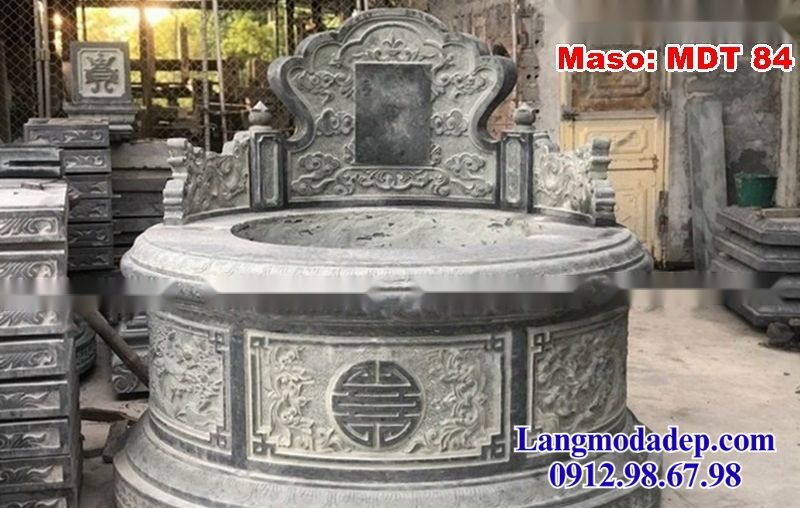 Lăng mộ tròn đá xanh rêu MDT 84 là một công trình nghệ thuật độc đáo, được chế tác tỉ mỉ từ những khối đá xanh rêu tự nhiên cao cấp. Với thiết kế tròn truyền thống, ngôi mộ không chỉ mang vẻ đẹp cổ kính mà còn thể hiện sự uy nghiêm và trang trọng.