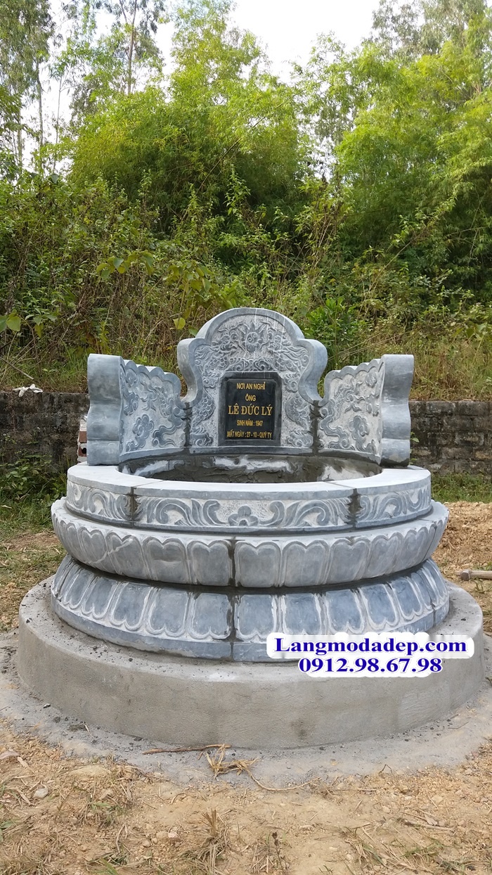 Mẫu mộ tròn đẹp, thiết kế tựa ngai – NB 04 – Đá Mỹ Nghệ Ninh Bình với thiết kế đơn giản.Hoa văn chạm khắc trên mộ không quá cầu kỳ. Họa tiết hoa hoa sen thường sử dụng nhiều với các cánh hoa đi xung quanh chân mộ. Tạo hình ngôi mộ như một đài sen to lớn, cao quý, đẹp đẽ.