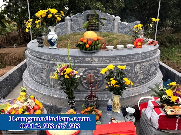 Mộ tròn đá NB 23 – Đá Mỹ Nghệ Ninh Bình được thiết kế ở dạng nhiều tầng với vẻ bề ngoài là một khối trụ đứng và có lỗ thông thiên ở giữa ngôi mộ giúp hấp thụ được nhiều nguyên khí đất trời. Mộ tròn đá thường được xây dựng ở những nơi địa thế cao.