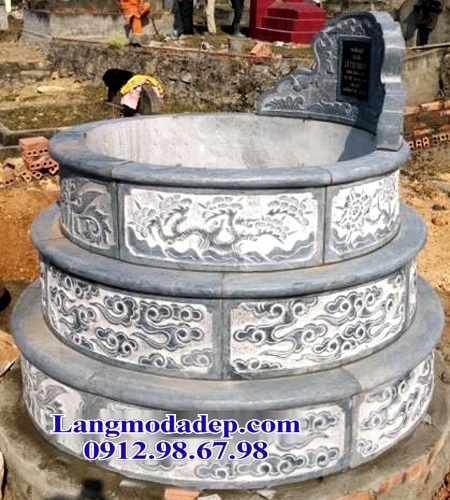 Về ý nghĩa phong thủy, hình tròn tượng trưng cho sự viên mãn và hoàn thiện. Ba tầng thể hiện tam tài (thiên – địa – nhân), kết nối âm dương. Hoa văn rồng mây là biểu tượng của quyền lực, phú quý, mang đến phúc khí và thịnh vượng cho con cháu. Thiết kế này không chỉ giúp định khí, tạo ra năng lượng tích cực bảo vệ người đã khuất mà còn phù hợp với con cháu.